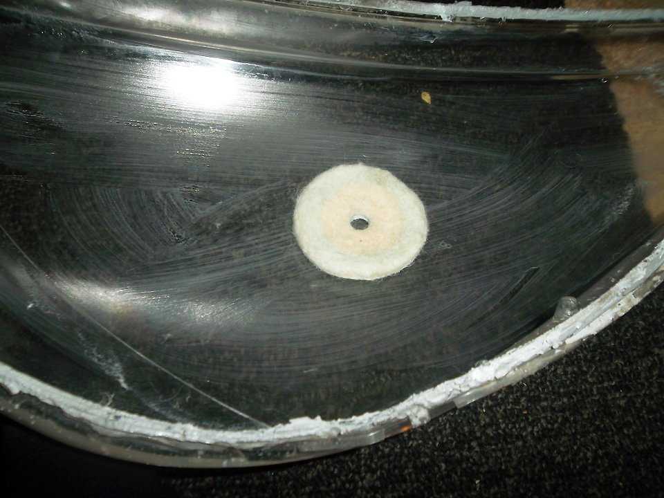 Работать нужно осторожно, так как если перестараться, то фара нагреется от полировочного круга до такой степени, что может начать плавиться. Это приведет к появлению пятна, убрать которое уже не получится.