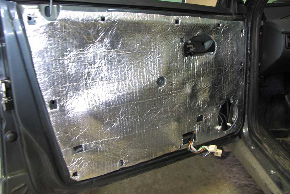 Задние двери транспортного средства изолируются так же, как и передние. В них отсутствуют динамики. Поэтому можно уменьшить число изолирующих прослоек и снизить качество используемого материала.
