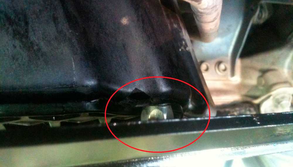 Как уже было сказано, большинство автомобилей имеют «мокрый» картер, в котором находится масло. При этом поддон условно является самой нижней точкой мотора. Необходимо внимательно осмотреть указанный поддон на предмет трещин, сильных вмятин, свежих сколов и т.д. Если течи масла нет, тогда следует просто запомнить, где находится место удара.