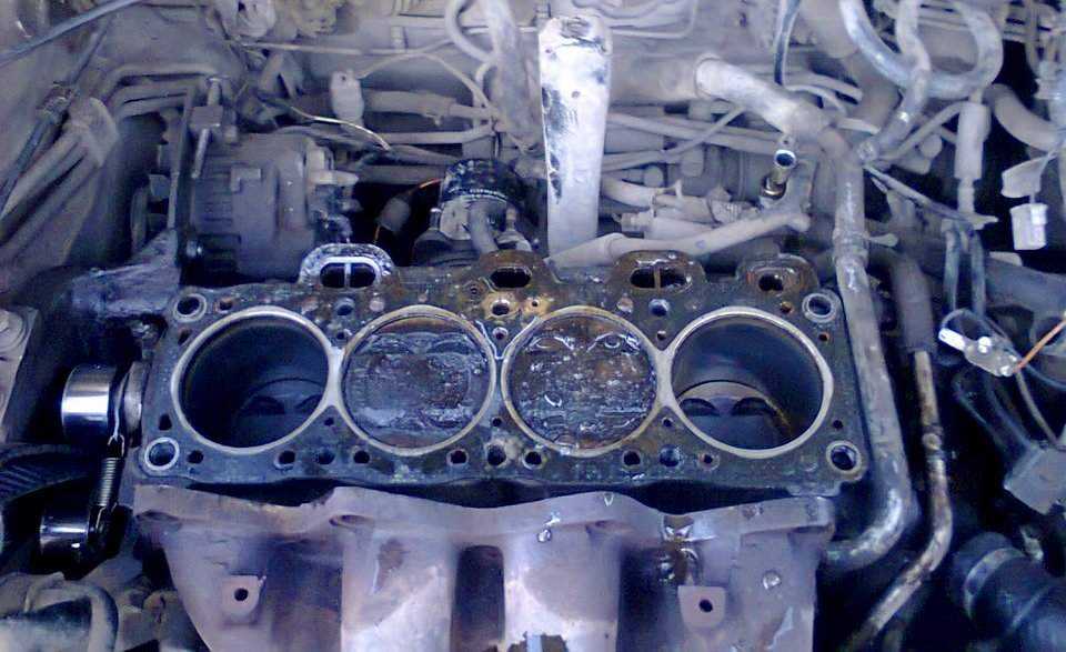 Бывает и так, что возникающее высокое давление приводит к разрыву шпилек или болтов крепления головки блока, ее изгибу, повреждению прокладки ГБЦ.