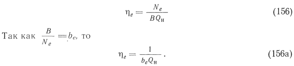 Эффективный к. п. д. ? е учитывает как тепловые, так и механические потери в двигателе и показывает ту долю тепла, которая превращается в эффективную работу, от всего подведенного в цикле. Для судовых дизелей ? е лежит в пределах 0,35—0,45. Так как ? м = N e / N i , то на основании формул (155) и (156) можно получить ? е = ? i ? м . Подставив ? i = ? ? t , определяем
