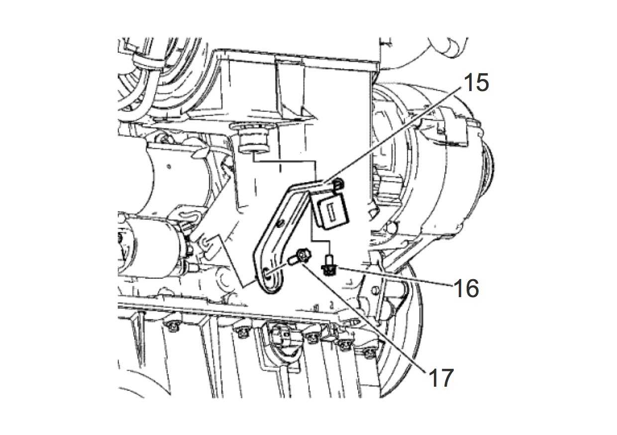 9. Выкрутить винты 16,17 кронштейна коллектора, демонтировать кронштейн 15.