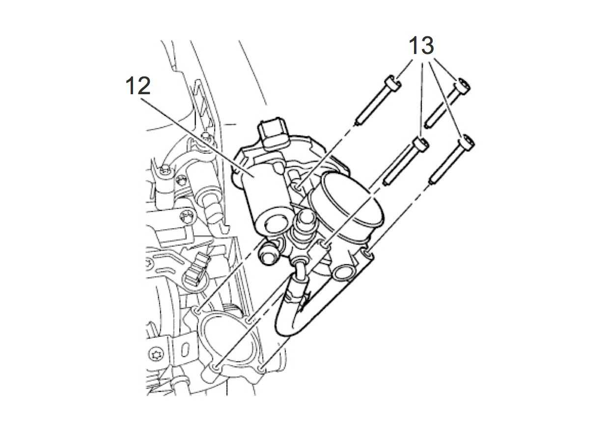 7. Отсоединить коммуникации дросселя 8-11, снять сам дроссель 12, открутив винты 13.