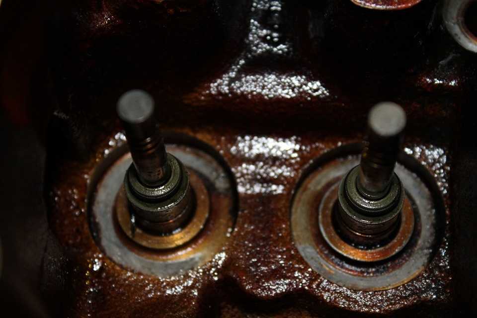 - Износ маслосъемных колпачков и направляющих втулок, установленных на клапанах газораспределительной системы.