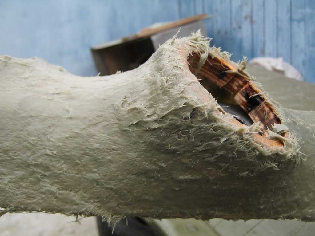 - После этого излишки стеклоткани вырезаем, а с помощью той же шкурки устраняем подтеки от клея.