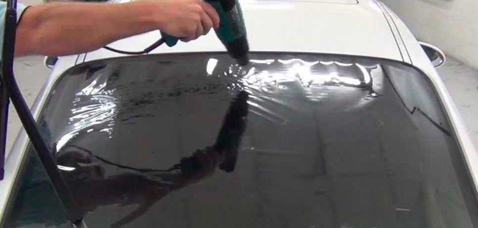 Заключительный этап – это поджатие тонировочной пленки по периметру выгонкой, при одновременном нагреве стекла с наружной стороны при помощи фена.