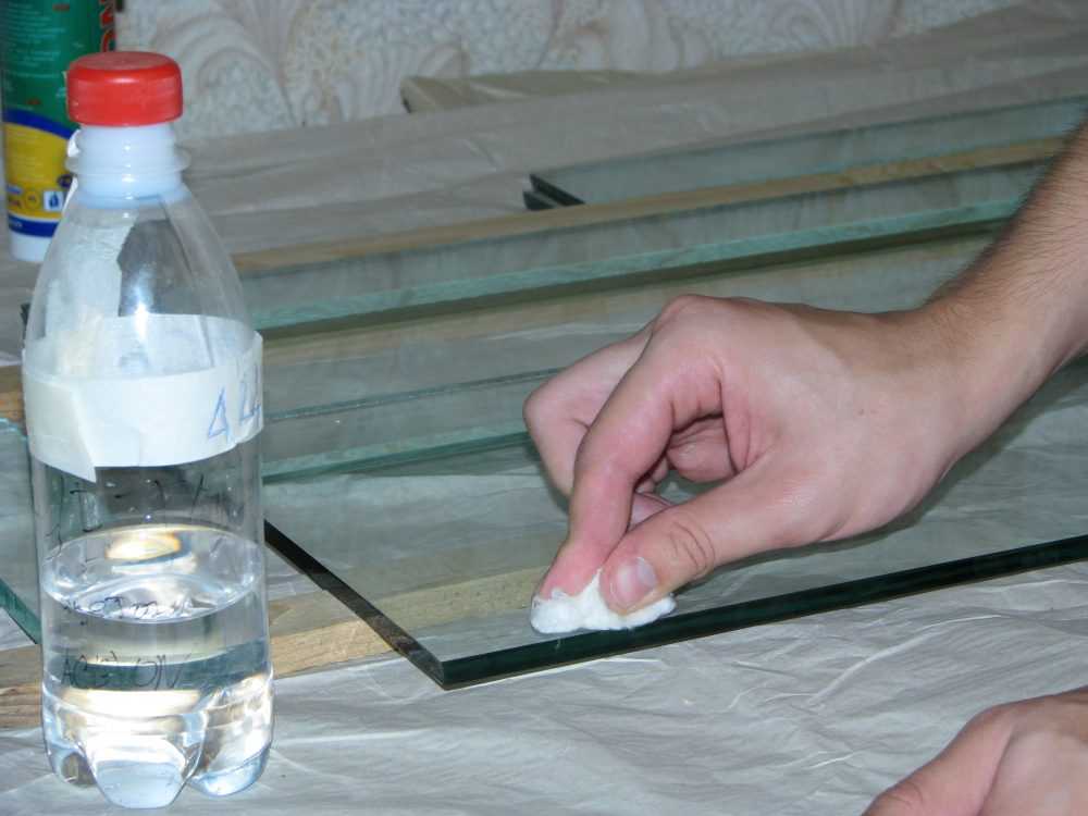 Чем обезжирить поверхность перед покраской, если это стекло? Стекло в отличии от пластиковых изделий гораздо спокойнее относится к агрессивным препаратам. Если цель – склеивание стекол, можно применить универсальный растворитель и даже спирт. Если нужно отмыть стекло, лучше выбрать специализированные материалы.