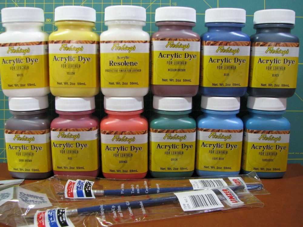 Для работы используют кисть или краскораспылитель. В составе обычно присутствуют воски и масла, которые питают и смягчают материал, придают ему более дорогой вид. Палитра акриловых красок разнообразна, но самыми популярными цветами остаются бежевый, черный и коричневый.