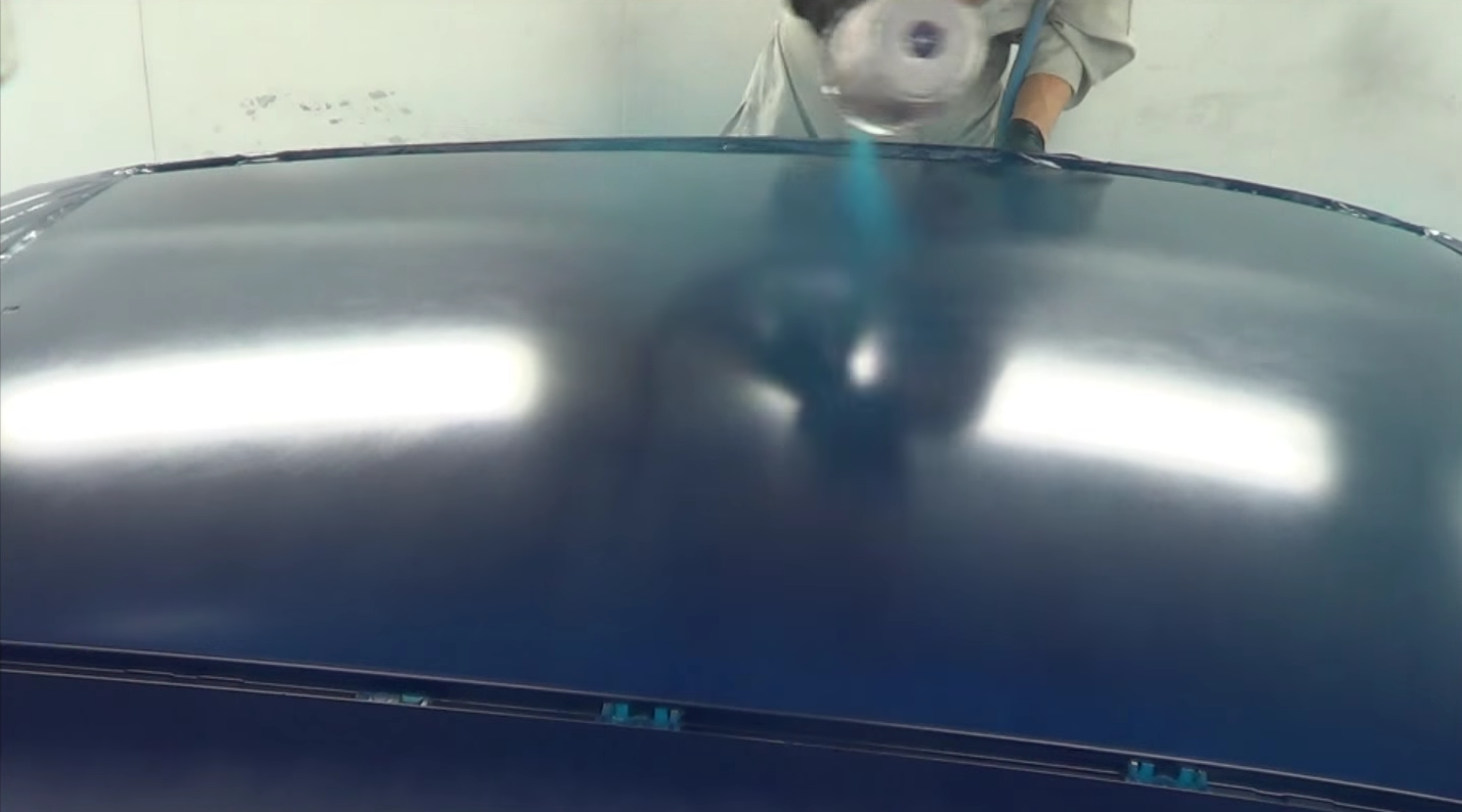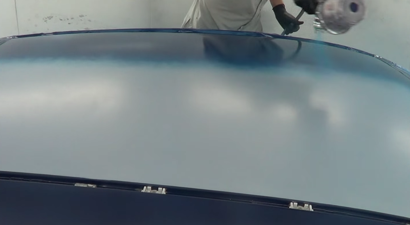 Так как крыша автомобиля представляет собой большую горизонтально расположенную поверхность, следует использовать для ее окрашивания краскопульт.