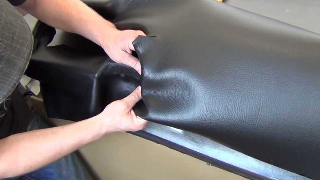 Если у вас нет подходящей швейной машинки, можно пойти немного иным путём и склеить детали непосредственно на поверхности панели. Но в этом случае следует действовать особенно аккуратно: такой подход опасен появлением зазоров в местах стыков. Если вам не удастся как следует растянуть и уложить материал, он будет расходиться и отклеиваться от торпеды.