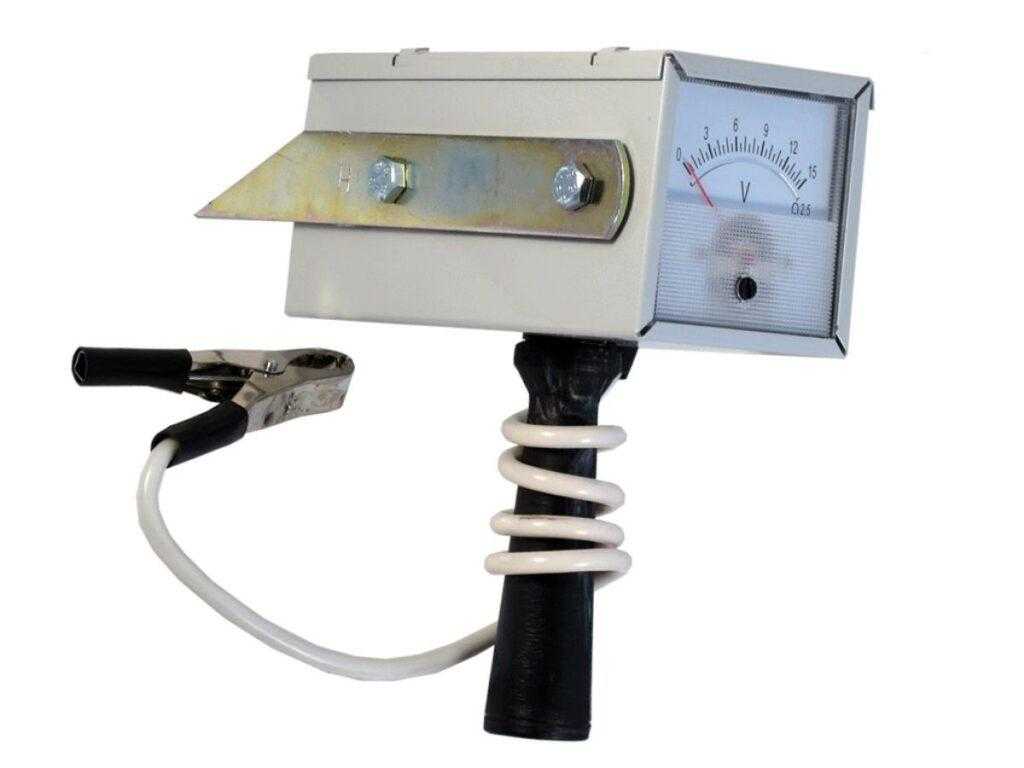 Нагрузочная вилка разработана для тестирования аккумуляторов и проверки работоспособности бортовой электросети. В корпусе установлен большой стрелочный вольтметр, к которому подключены два контактных электрода. Конструкцией предусмотрена съемная рукоятка, которая делает работу удобной.