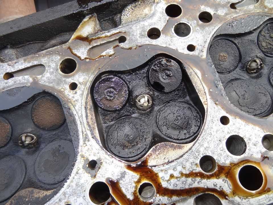 - прорывающиеся сквозь прокладку, поршневые кольца или клапаны горящие газы, повреждают их поверхность и еще сильней снижают давление.