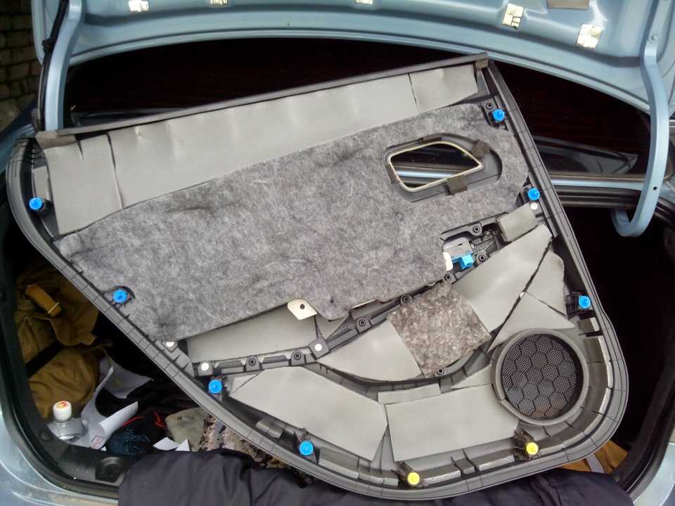 На этом этапе важно убедиться, что не нарушилась работа замков и стеклоподъемников. Дверные карты оклеиваются изнутри не толстым слоем виброизоляции