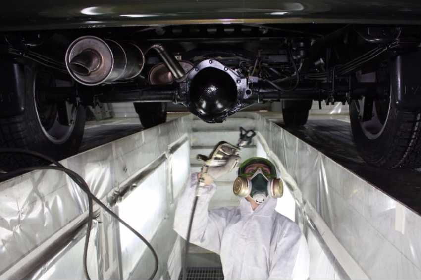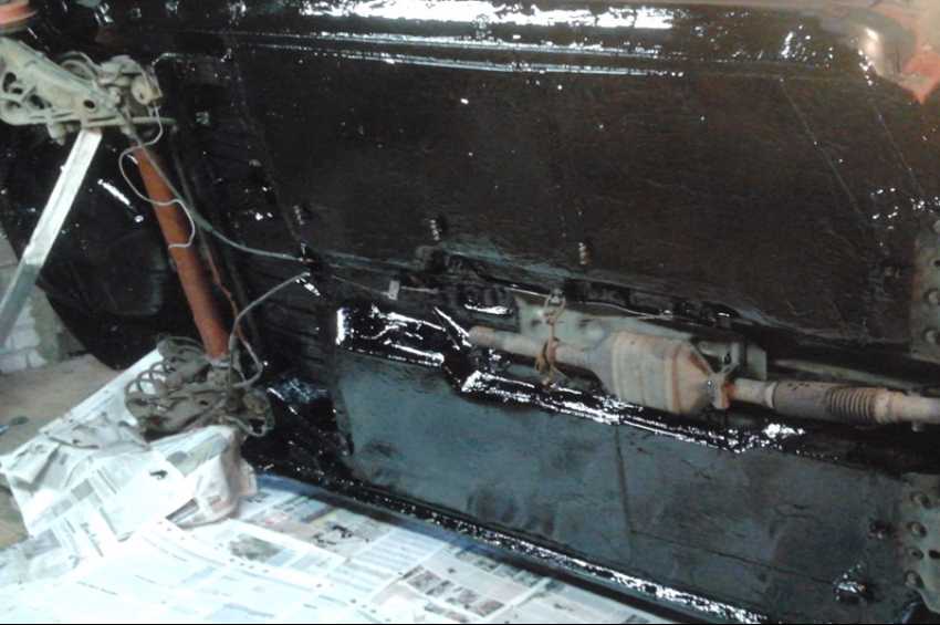 Подготовительный этап автомобиля аналогичен, как и в случае использования антигравия. Днище машины надо тщательно вымыть, высушить и очистить от очагов ржавчины. После этого можно приступать к нанесению антикоррозийной мастики.