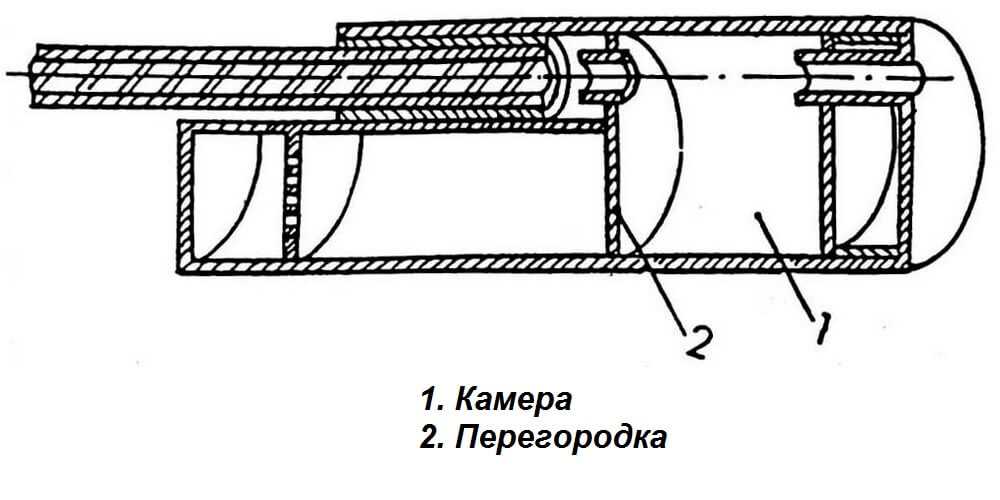 Обычный глушитель имеет несколько камер, которые поделены перегородками.