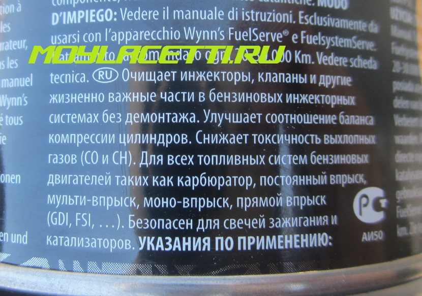 Любой нагар и отложения смол способна снять Wynn’s. Она довольно едкая и подходит для автомобилей 2000-х годов выпуска. Но для ее использования необходима проверка характеристик для конкретного авто, чтоб не нанести вред инжектору.