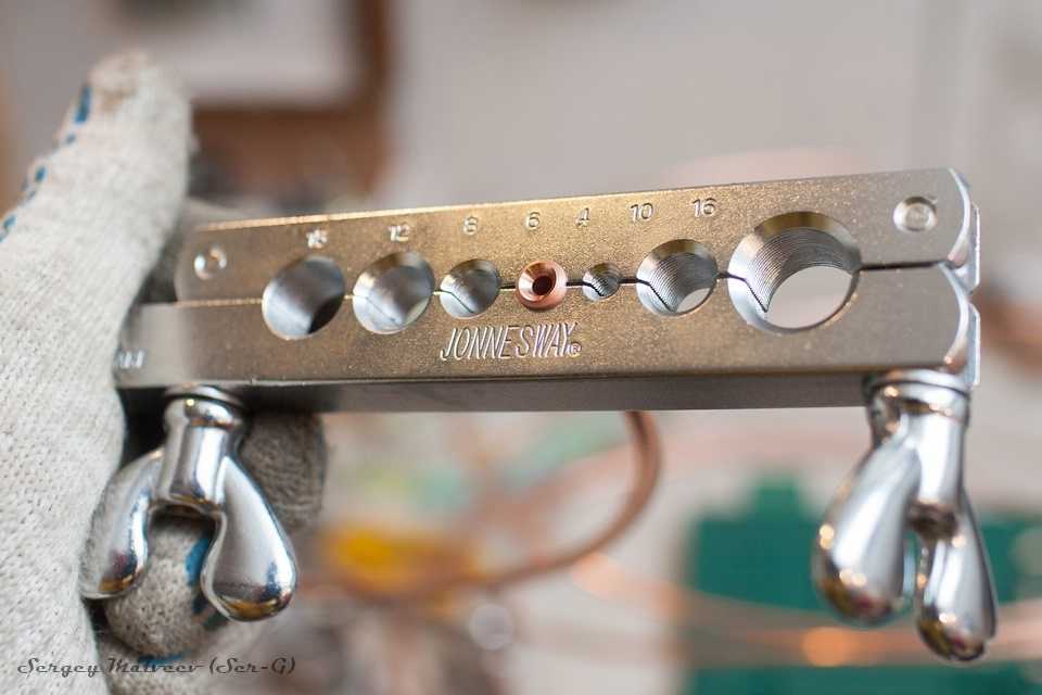 - Вкручиваем штамп и расплющиваем слегка торец медной трубки;