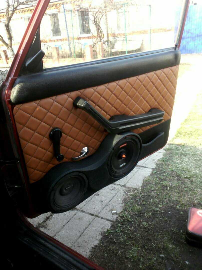 Панели дверей автомобиля ВАЗ 2107 прикладываются на место и притягиваются к основе при помощи декоративных болтов. Такой способ монтажа отличается высокой прочностью и обеспечивает оптимальные условия для работы колонок аудиосистемы. Самостоятельный тюнинг с перетяжкой салона автомобиля кожвинилом преображает интерьер в настоящее произведение искусства.