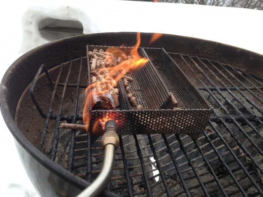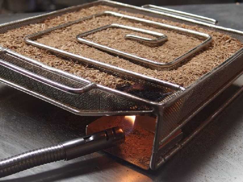 Работает «лабиринт» очень просто. В него засыпают толстый слой щепы и поджигают. Воздух через стенки проникает с трудом, поэтому древесина медленно тлеет, а не горит. Во время этого выделяется большое количество дыма.