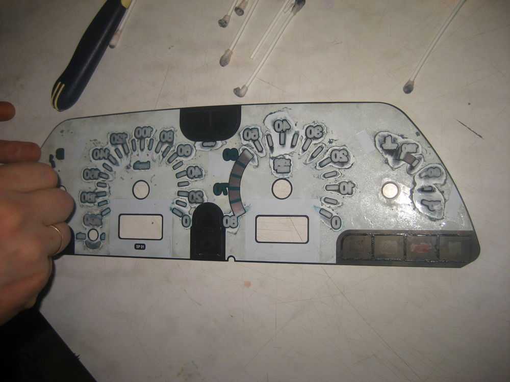 Следует аккуратно снять обшивку на приборной панели вашего автомобиля для того, чтобы получить доступ к тем органам управления или контроля за состоянием авто, над которыми вы хотите работать. В том случае, если вы собираетесь изменить шкалу на приборах, советуем вам крайне аккуратно снять стрелки. Для этого идеально подойдет простой маркер, которым помечается место соединения стрелки при помощи черточки или точек. В том случае, если стрелка припаяна, можно воспользоваться паяльником и разогреть олово, которое удерживает стрелку на катушке. Однако не забывайте, что стрелку все равно нужно будет установить назад, а для того, чтобы сделать это правильно, нужно обозначить места соединения, ведь в противном случае калибровку можно будет провести только в автосервисе.