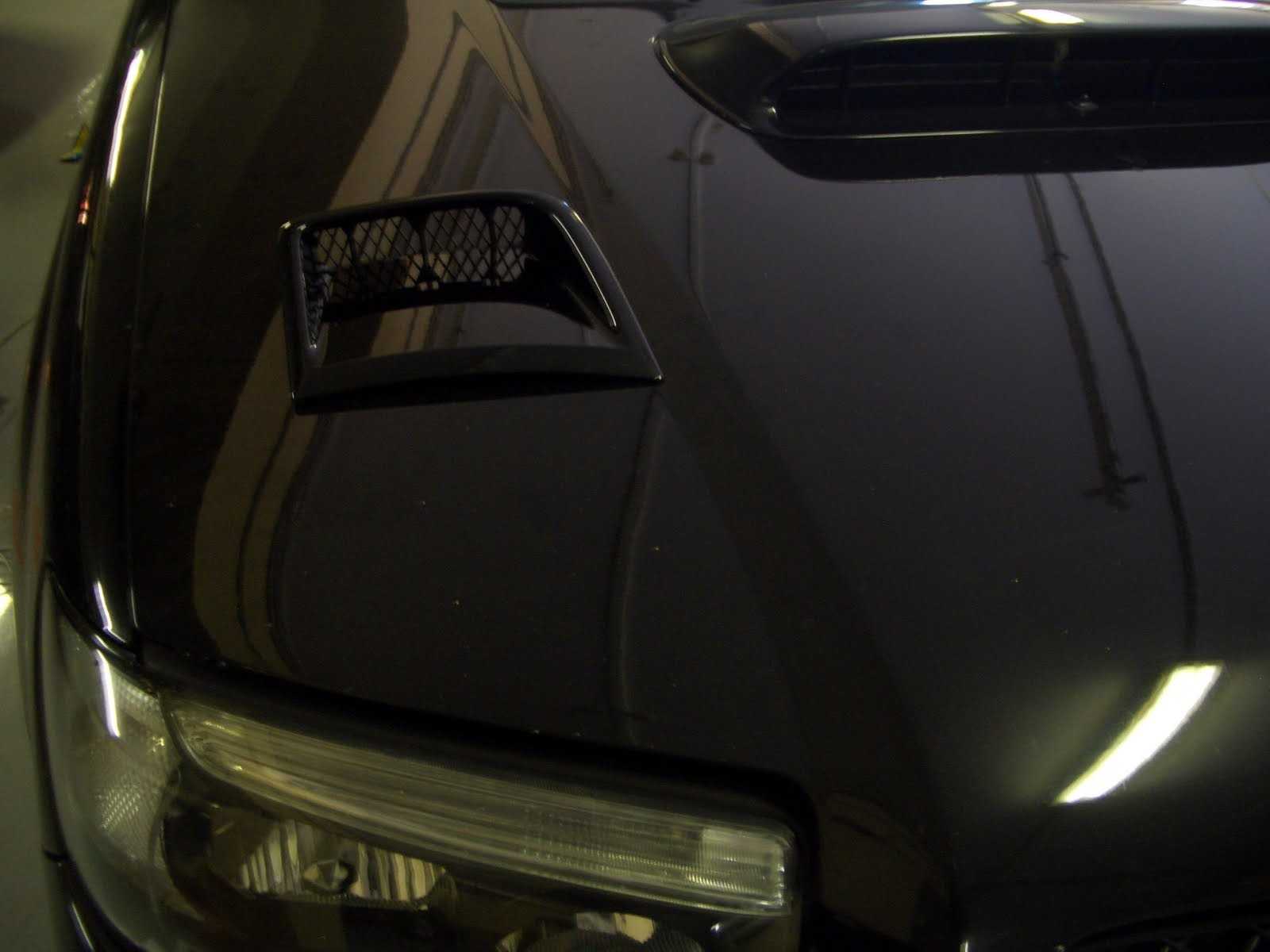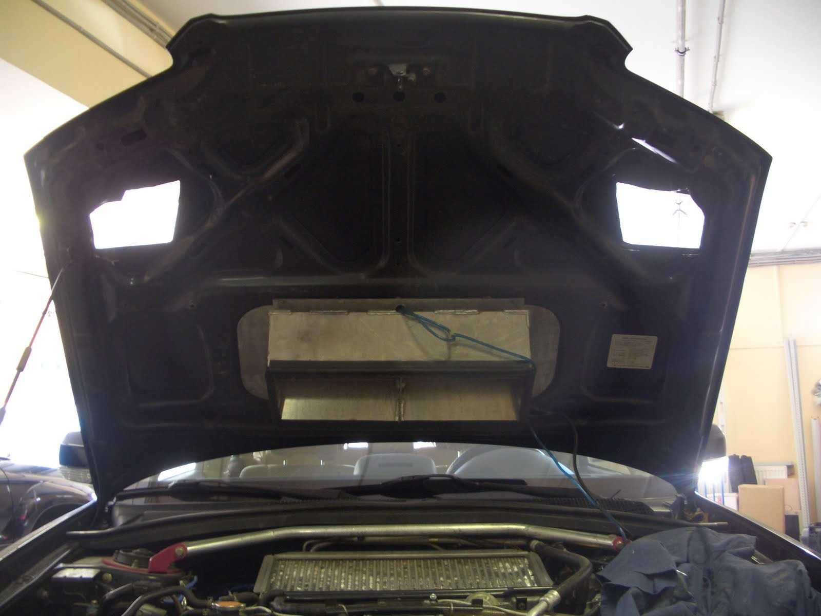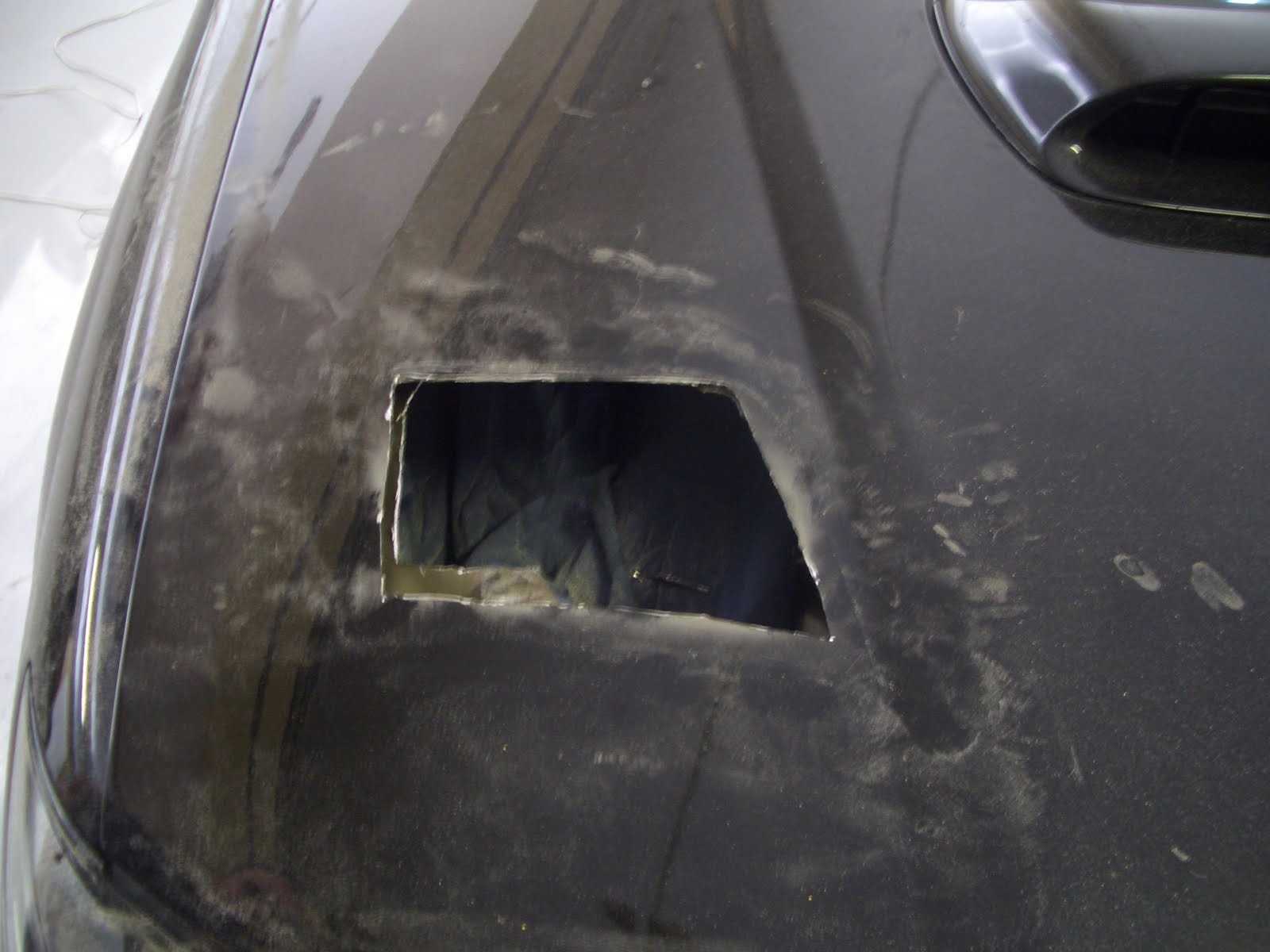 В нужных местах в капоте вырезаются отверстия по размерам основания, обрабатываются края реза и крепятся сами накладки. При выполнении отверстий следует внимательно выбирать место для установки, избегая повреждения ребер жесткости.