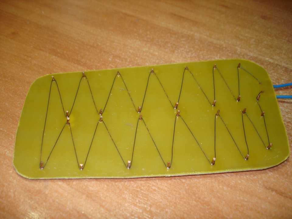Вольфрамовые нити, крепятся к основе избегая, их соприкосновения друг с другом и спаиваются с электропроводами на выход +/- при помощи паяльника.