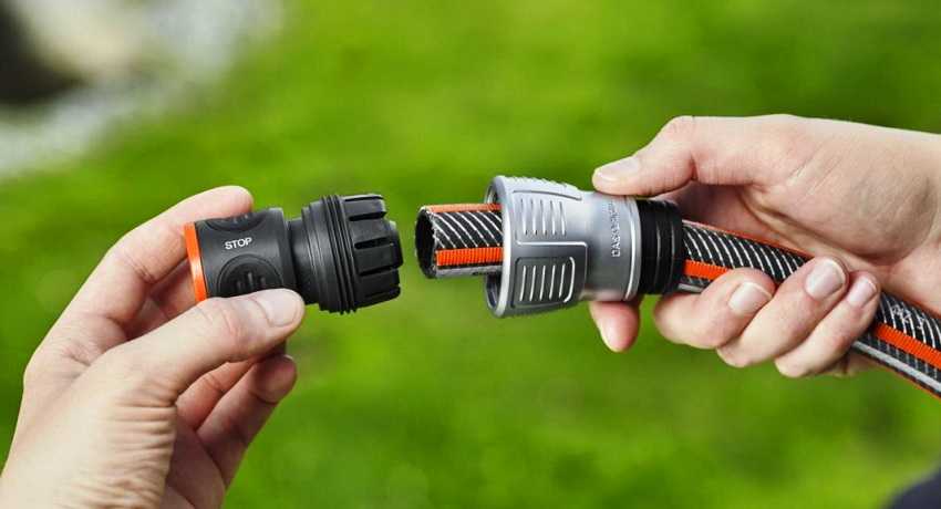 После выбора материала изготовления шланга стоит определиться с его диаметром и длиной. В зависимости от этих критериев рукав можно приобрести на отрез или в бухте. Наиболее распространенными являются изделия, длина которых достигает значений 15, 20, 25, 35 и 50 м. Данный параметр подбирается исходя из размера участка и способа прокладки шланга. Если предполагается полив разных грядок, следует сложить все длины. Для соединения элементов разных размеров необходимо будет приобрести быстросъемные соединения для шлангов. Они могут быть выполнены в виде тройника, елочки или крестовины.