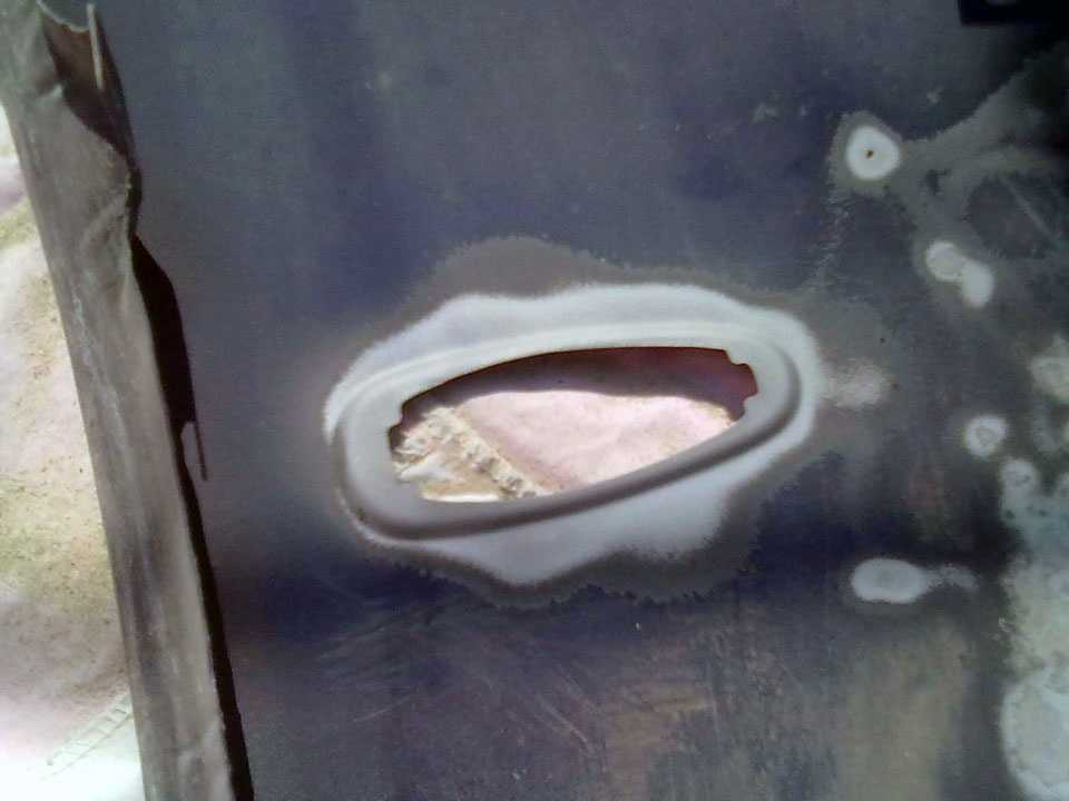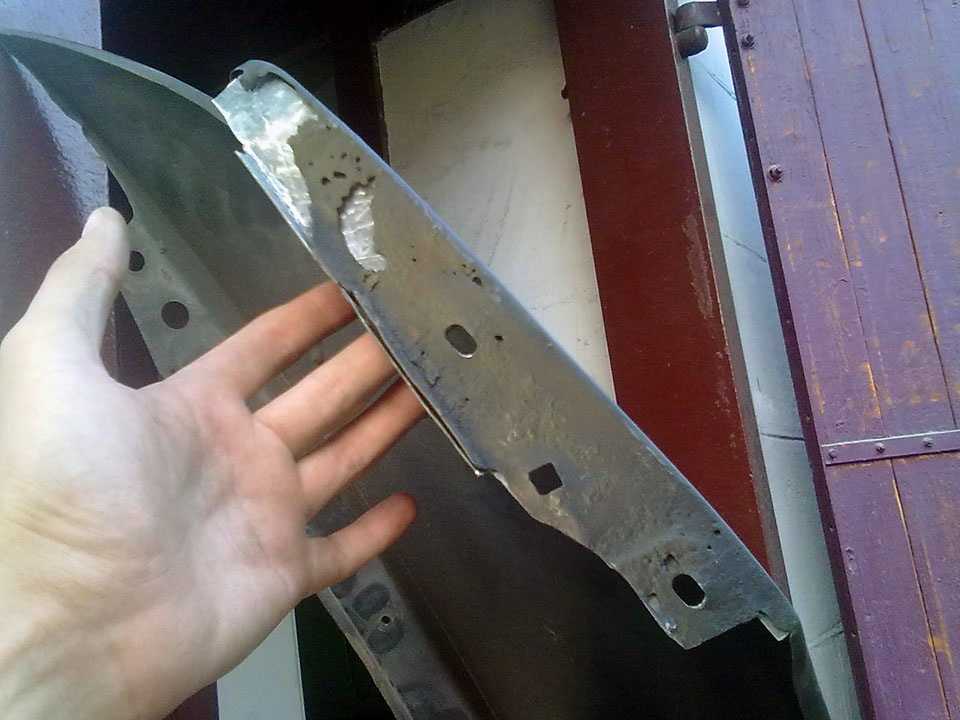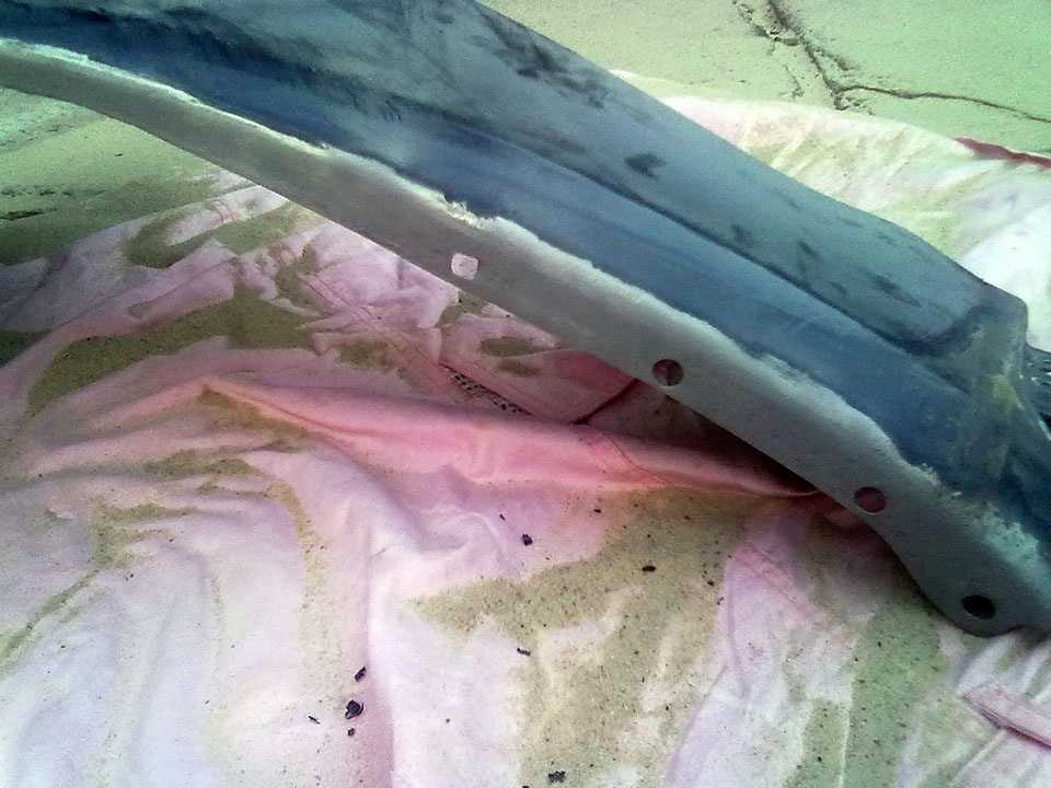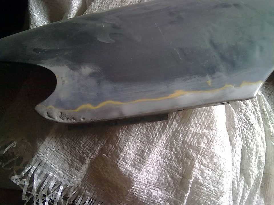 Варить это дело к крылу было очень тяжело — после пескоструйной очистки толщина кое-где была чуть ли не 0.5 мм, но йа справилса. После сварки отпесочил сгоревший грунт: