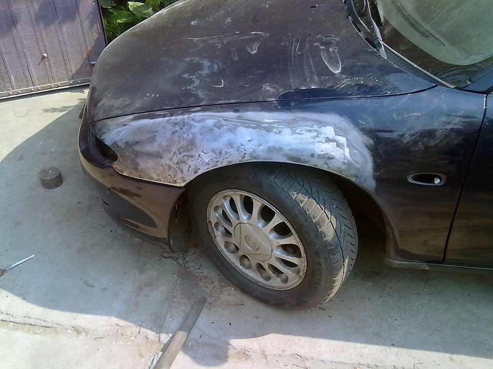- Ржавчина на крыльях, как убрать. В принципе, способы, как убрать ржавчину арок – те же. Но, как правило, параллельно приходится убирать вмятины, поскольку крылья чаще всего страдают при столкновении или во время неправильной парковки. Следовательно, сначала восстанавливается геометрия, а затем выполняются все вышеперечисленные работы в строгой последовательности: зачистка, удаление очага, шпаклевка, грунтовка и окраска.