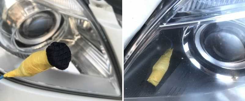 Чтобы очистить эту деталь изнутри, не разбирая фару полностью, воспользуйтесь следующим способом.