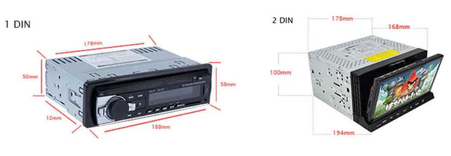 Как правило, наибольшим спросом пользуются универсальные магнитолы. Такие решения могут иметь стандартный размер 1 – DIN, когда высота составляет 5 см, а ширина 18 см. Еще есть магнитолы 2 DIN, где высота 10 см, а ширина 18 см.