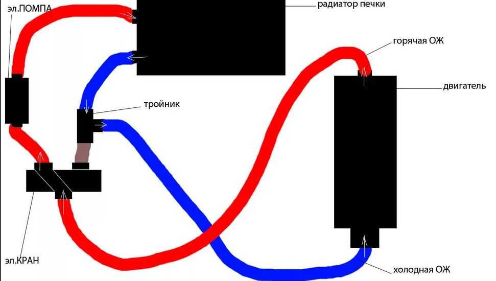 Очень популярным методом утепления авто является установка дополнительной помпы. Проще говоря, перед печкой, в разрез патрубка от печного радиатора устанавливают дополнительный насос, который начинает быстрее прогонять горячую ОЖ через печной радиатор. Такой способ эффективен, когда штатная система отопления не достаточно прогревает салон, хотя полностью исправна.