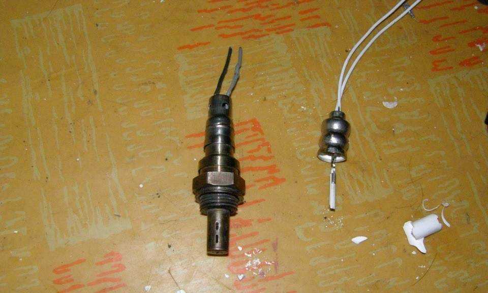 Есть необычный способ ремонта, но для нужно иметь 2 одинаковых датчика. Если причины неисправности каждого из них разные, можно попытаться собрать один из двух. Так, например, один может быть неисправен из-за обрыва сигнального провода, а второй из-за поломки нагревательного элемента. Прозвоните мультиметром каждый, чтобы выявить тот, который с обрывом. Аккуратно распилите оба. На фото видно, что на одном из них обломан нагревательный элемент. Кроме того, повреждена керамическая оболочка.
