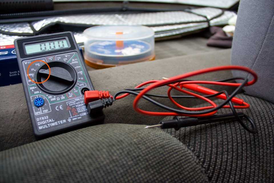 Чтобы наверняка найти места разрывов, достал мультиметр. Устанавливаем режим измерения напряжения, предел 20В.