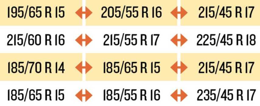 Чтобы узнать, насколько шины конкретных размеров взаимозаменяемы, можно воспользоваться специальной таблицей. Она поможет определить, какую резину вы можете установить на свое транспортное средство.