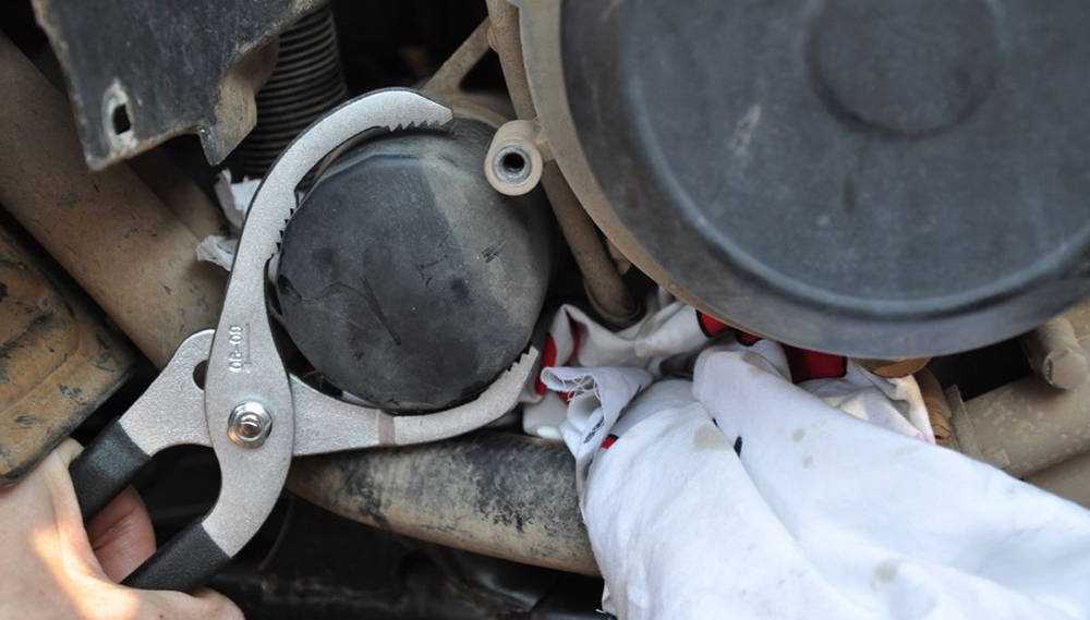 Процедура производится непосредственно после слива отработанного масла. Слив отработки рекомендуется производить на яме или эстакаде, на прогретом двигателе через маслосливное отверстие на поддоне картера. Иногда для этого понадобится снять защиту силового агрегата, если она предусмотрена модификацией транспортного средства. С подробной инструкцией по смене жидкости в силовом агрегате к конкретной модели автомобиля можно ознакомиться в руководстве пользователя или в статьях по данной тематике на нашем сайте. После слива отработанного автомасла нужно демонтировать пришедший в негодность масляный фильтр, на его место установить купленный фильтрующий элемент.