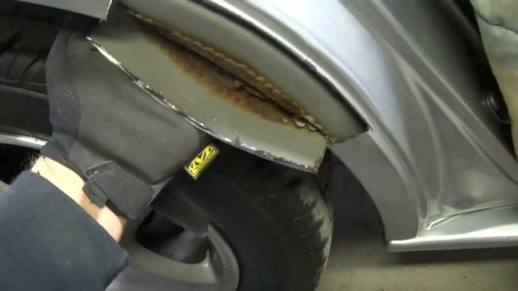 - Иногда коррозия серьезно разрушает автомобиль. Обнаруживаются дырки «навылет» или поврежденный металл — чересчур тонкий. Здесь одной обработкой против ржавчины уже не обойтись. Сначала понадобится кузовной ремонт: сварка, шпаклевка и прочее.