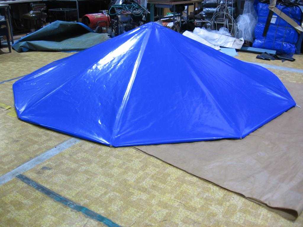 Текстильная часть палатки и укрывные тенты изготавливают из плотной ткани с влагоотталкивающим покрытием. Готовые изделия должны быть полностью герметичны. Поэтому даже микроскопические отверстия от иголок на швах тента провариваются горячим воздухом или проклеиваются специальной лентой.