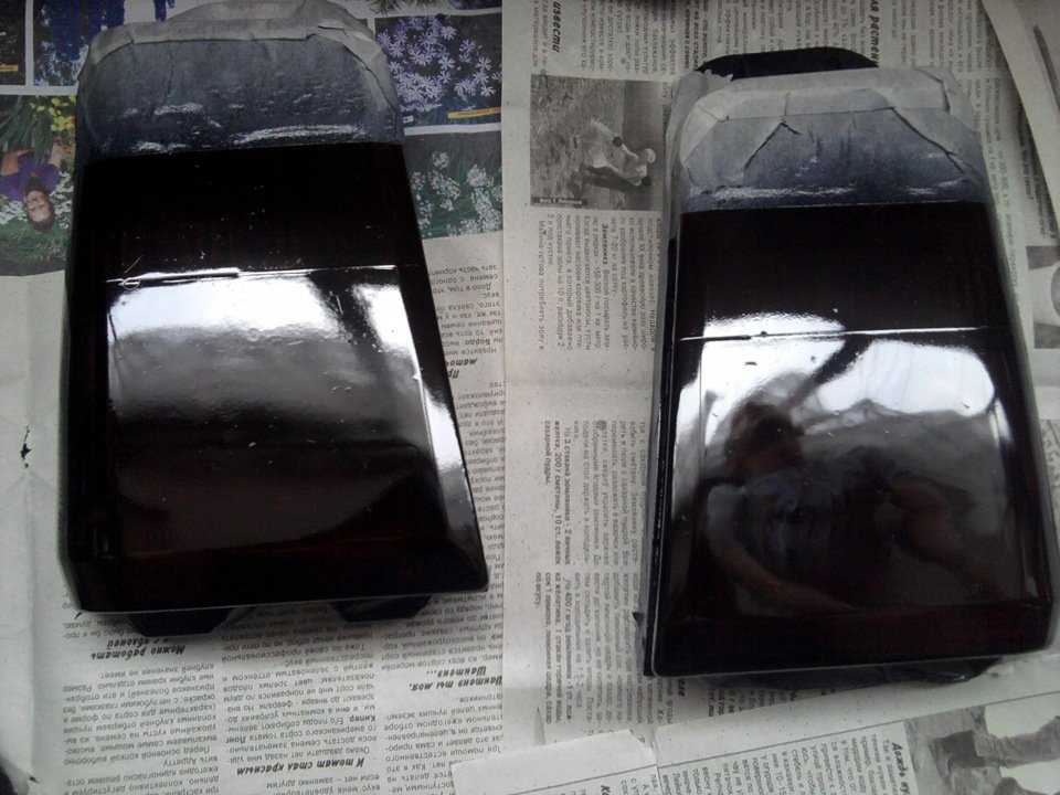 На всех этапах желательно использовать помощника. Специальными инструментами необходимо аккуратно демонтировать фонари и тщательно обезжирить их. Закрыв поверхности, на которые нежелательно попадание краски, можно приступать к процессу окрашивания. Тщательно встряхнув баллон, нужно нанести равномерный слой с расстояния около 30 см. Дав ему высохнуть, наносят лаком еще 3-4 слоя, следя за тем, чтобы не нарушить светопроницаемость. Дать слою высохнуть, и тонирование задних фонарей готово. В последующем удалить слой лака можно с помощью полировки.