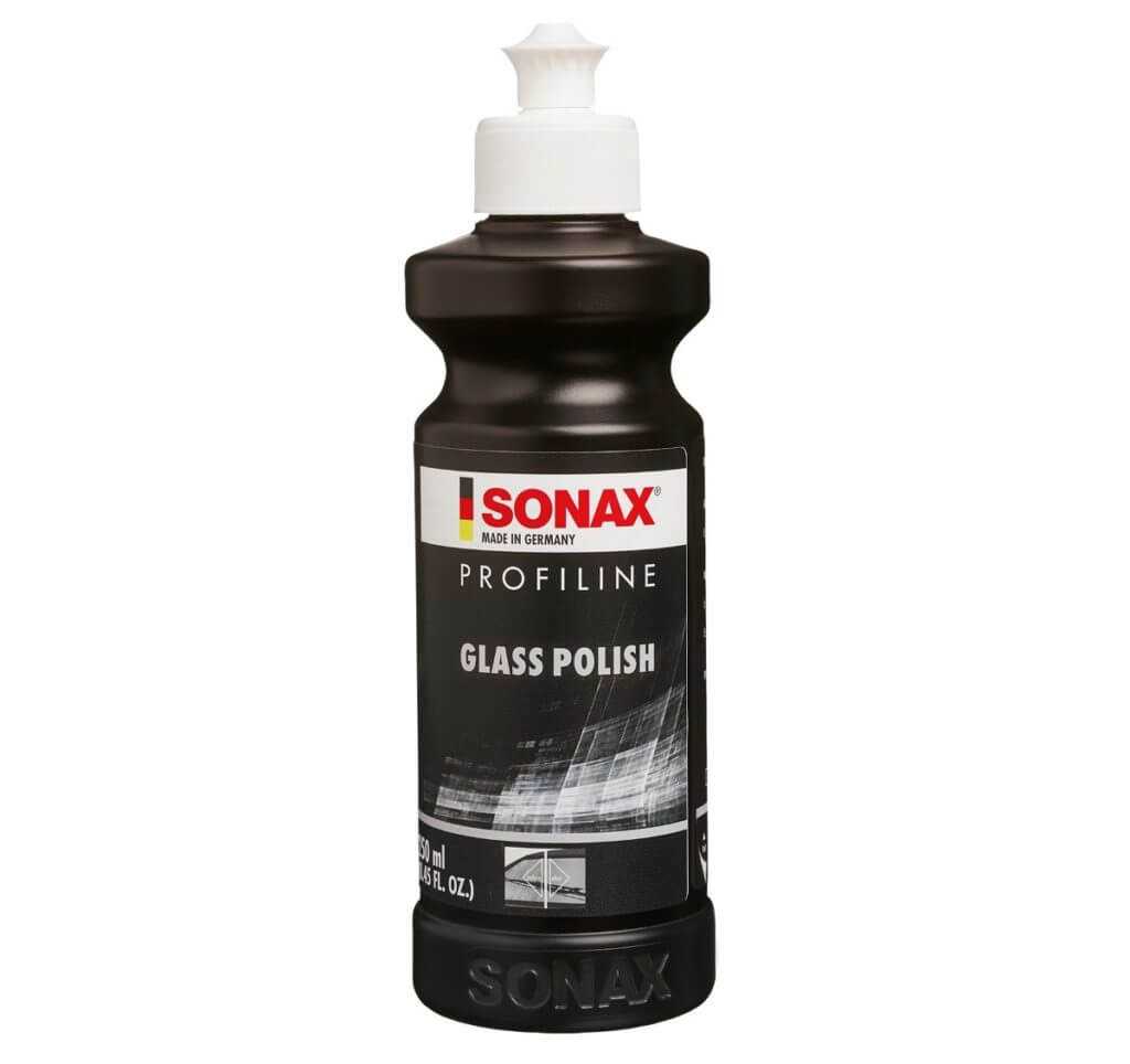 SONAX 273141. Этот полироль для удаления царапин используется в качестве средства для восстановления стекол. Характеризуется защитными свойствами, содержит цероксид, который полирует поверхности механическим и химическим способом одновременно. Используется только на стеклах, выравнивая их поверхность. Успешно удаляет помутнения. Недешево стоит, но во время применения не имеет неприятных запахов;