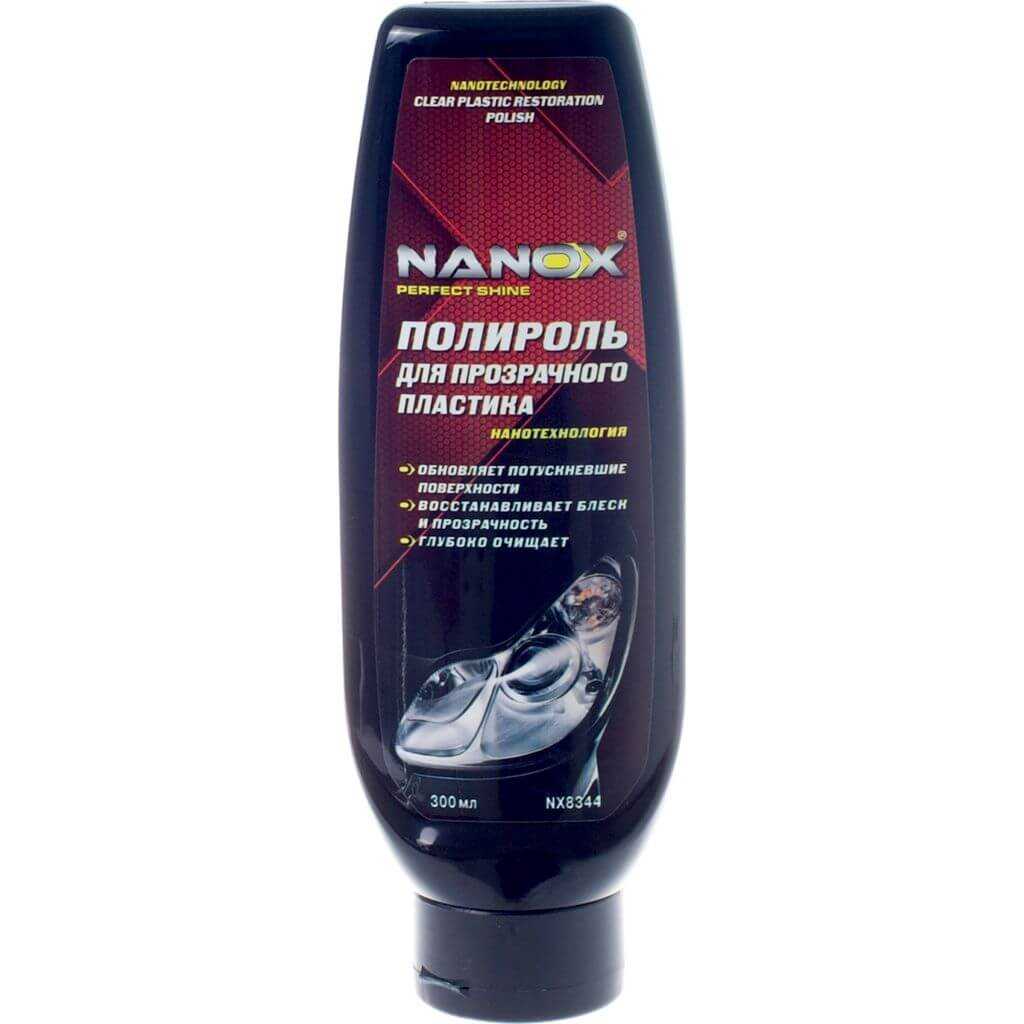 NANOX 8344. Полироли для кузова автомобиля «Нанокс» содержат нанокомпоненты, которые выравнивают микрорельеф кузовной поверхности. Используются также для придания блеска пластмассе и в качестве профилактики для фар (предотвращения появления желтизны и мутного вида). ПАВ, судя по отзывам, не имеет значительных недостатков и претендует на звание лучшего полироля;