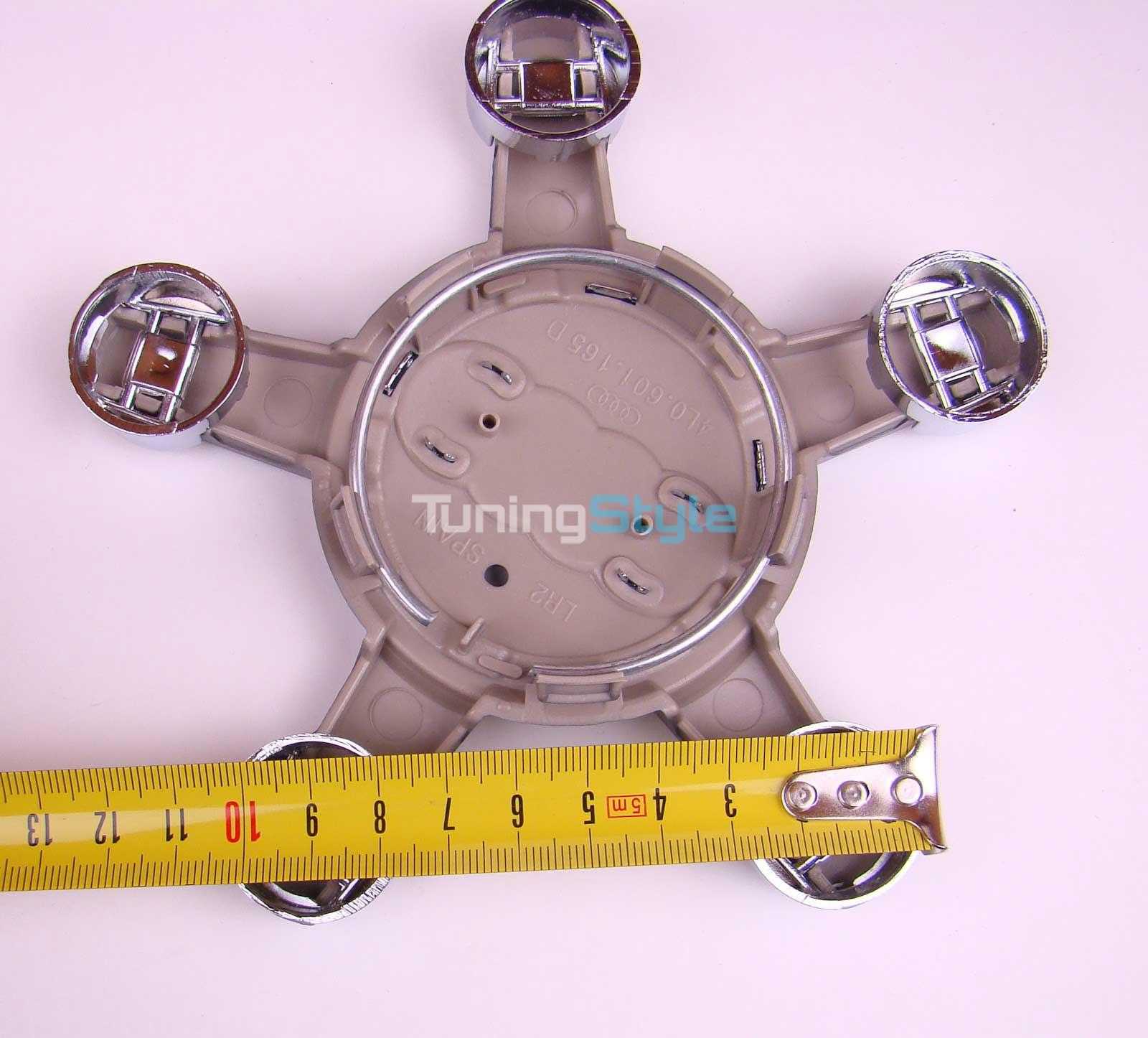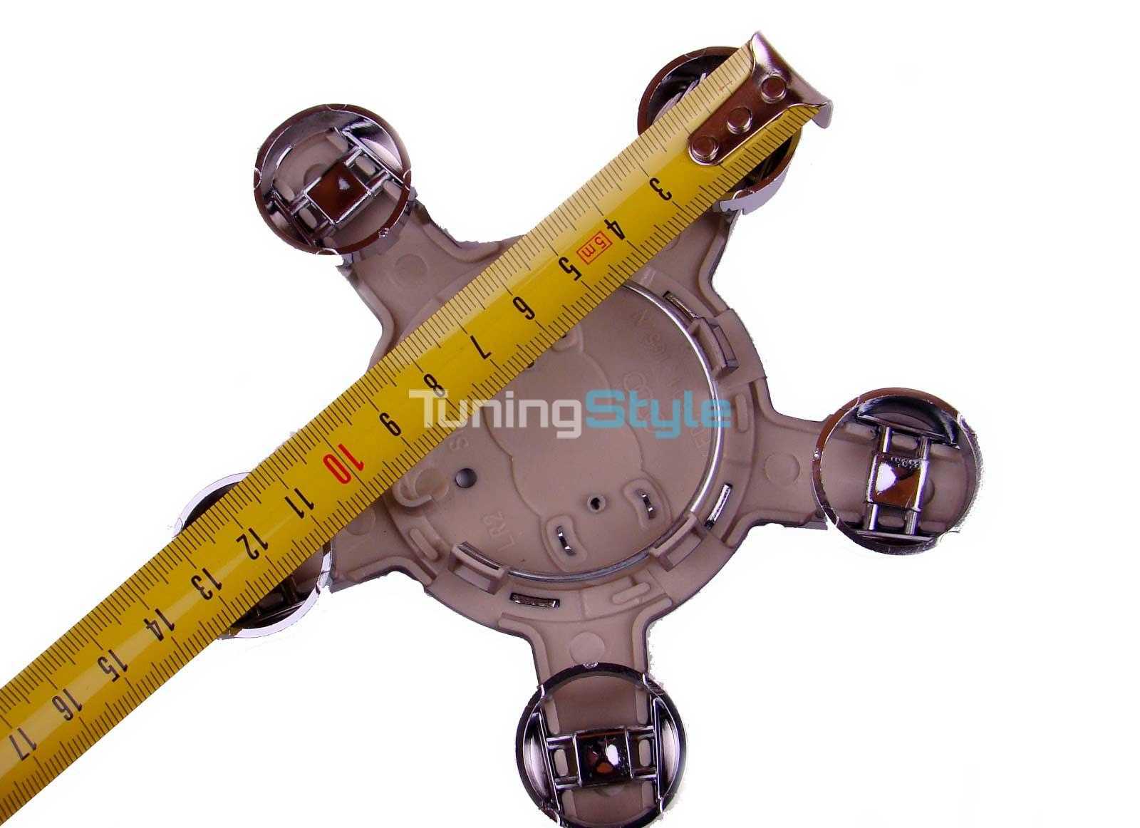 Для лучеобразных колпачков второго типа (например для Audi), также измеряем 4 параметра, внешний и внутренний диаметр, длину лапок а также нам понадобится расстояние между лучами колпачка. Рассмотрим подробнее.