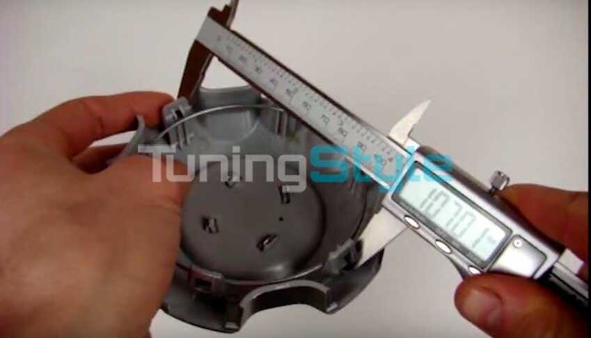 В том случае если у Вас нет возможности снять размеры с колпачка, ввиду его отсутствия, можно измерить внутренний диаметр ступичного отверстия в диске.