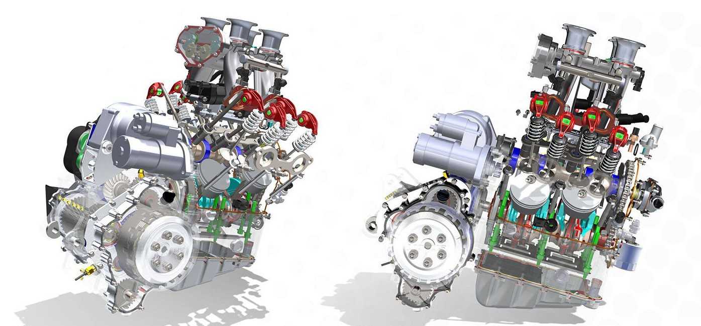 - оппозитный, его можно считать частным случаем V образного. В нем цилиндры находятся под углом 180°. Такой двигатель чаще всего используют в конструкции мотоцикла;
