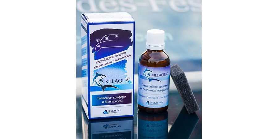 РейтингЛучший антидождь для авто» 2020 возглавляет состав от российского производителя. KillAqua защищает от наледи, снега, грязи и дождя лобовое стекло более года, боковые – до 3 лет. Состав не образует пленки, а впитывается в поверхность. Поэтому мойка профессиональными автошампунями, воздействие реагентами, дворниками не влияют на качество самого защитного покрытия.