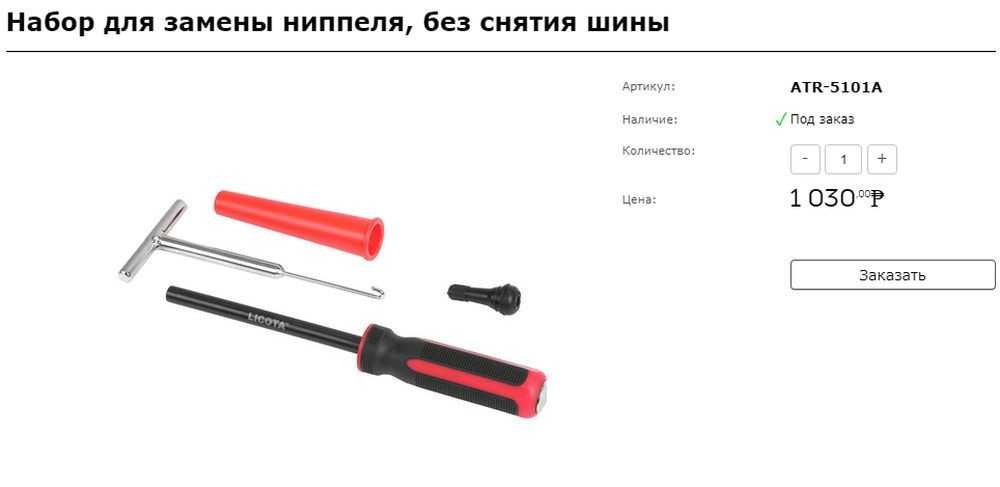 Для тех, кто не хочет заморачиваться с изготовлением приспособлений есть готовый набор для замены ниппеля без снятия шины. Но стоят они не совсем дешево.