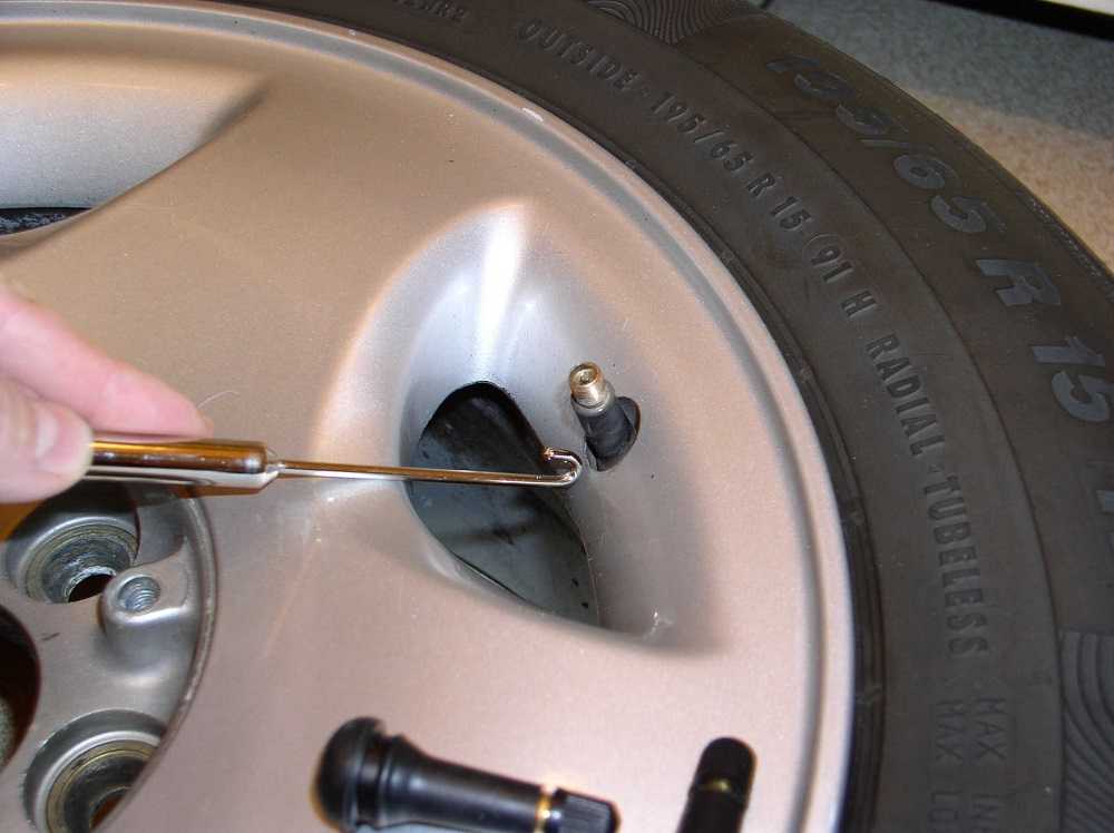 Чтобы своими руками поменять на колесе автомобиля вышедший из строя золотник, можно выполнить такие действия: