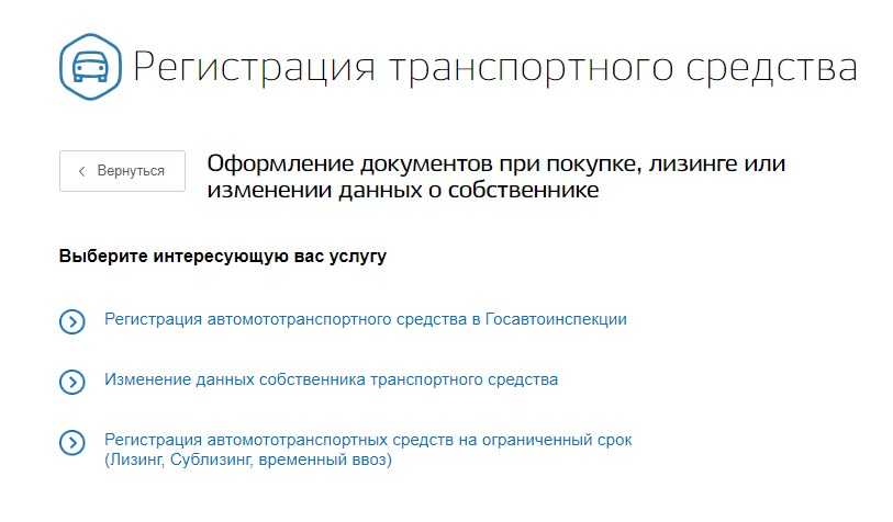 - Выбрать подраздел «Транспорт и вождение», затем – «Регистрация авто».