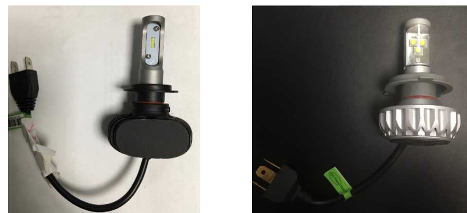 На картинке, которую мы даем для сравнения двух типов ламп, вы можете видеть обычные галогенные автомобильные лампы и комплект LED лампы для ближнего света.