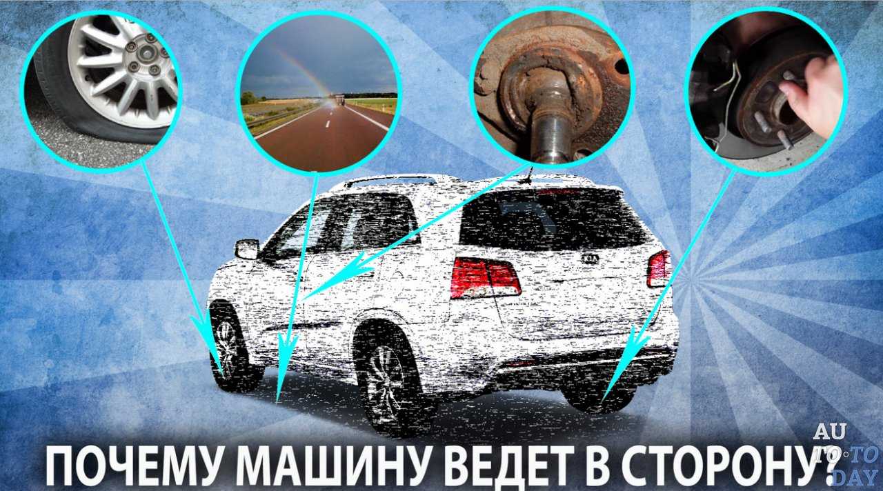 Очень важно перед началом замены тех или иных деталей и узлов машины проверить все крепления гаек и болтов элементов подвески, чтобы убедиться, что руль тянет в сторону не из-за простой разболтанности деталей. Кроме того, прежде, чем пытаться искать причину, нужно установить стабильность неисправности — нередко бывает, что машину ведет в сторону из-за колейности дороги, и в этом случае главной особенностью увода рулевого колеса по этой причине станет то, что тянуть его будет не только в одну сторону, но в разные — в зависимости от того, с какой стороны от нашей траектории движения и находится эта колея